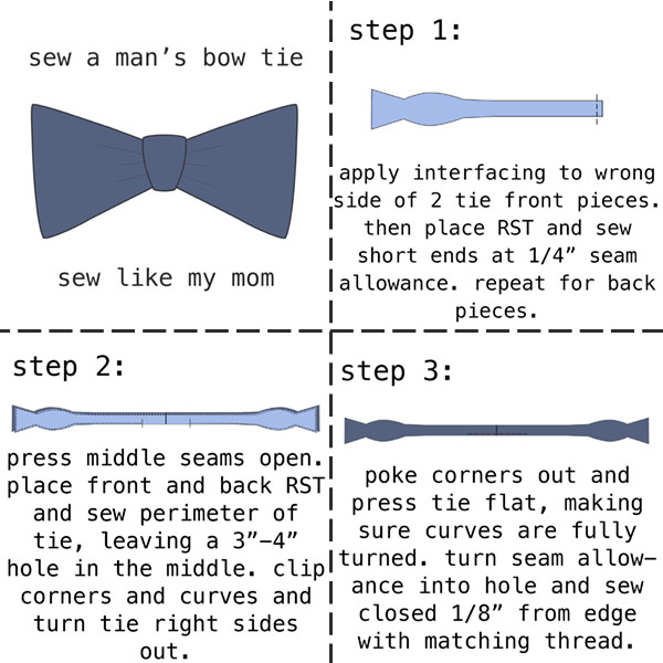 This pattern download is for the pattern pieces only. For full color photo instructions, please visit sewlikemymom.com/mens-bow-tie-tutorial/
