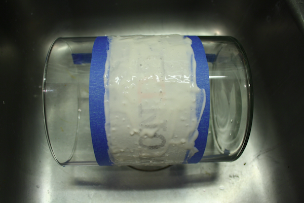 I like to give it a once over to make sure the full area was etched before I wipe off the stickers and tape. You can tell it etched because the area will be opaque and there will be a noticeable difference between it and the rest of the jar.